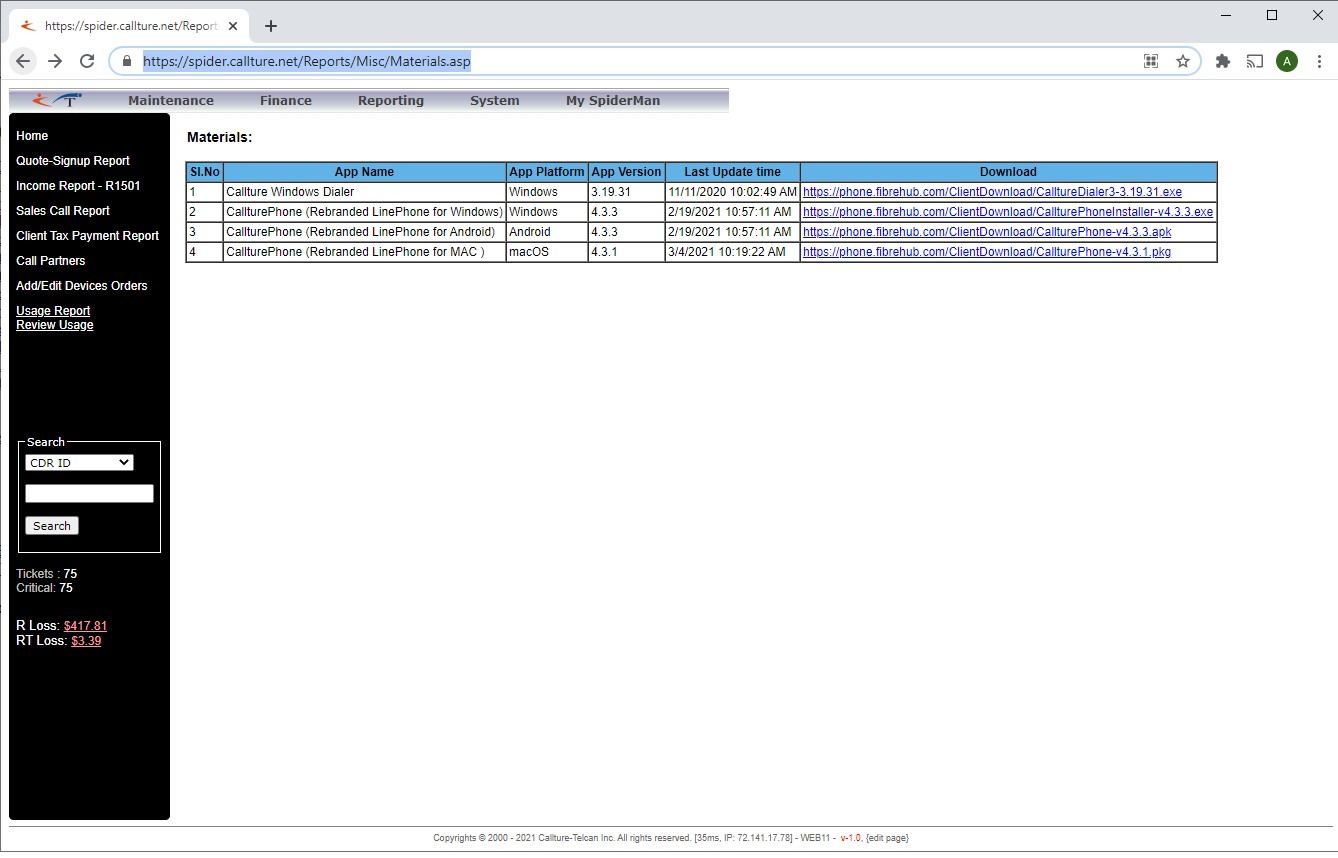 Step 1 - Download and Install the latest version of the app from this page: https://spider.callture.net/Reports/Misc/Materials.asp