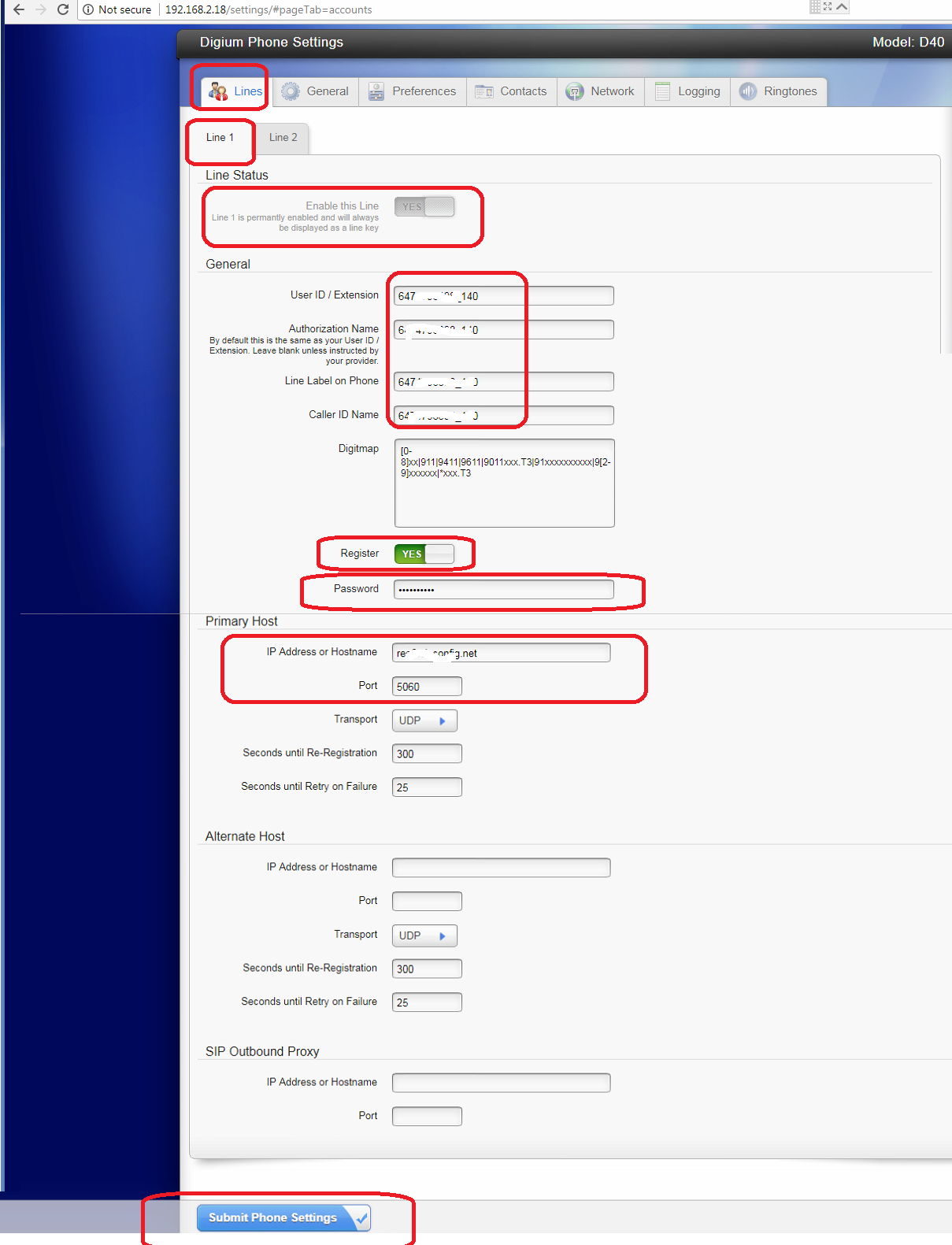 1) Important: Please make sure the MAC address is setup on Callture Digium DPMA Server (which is different than Callture Provisioning Server), also inbound servers are setup correctly for the phone's extensions on spider (like a manual provisioning)